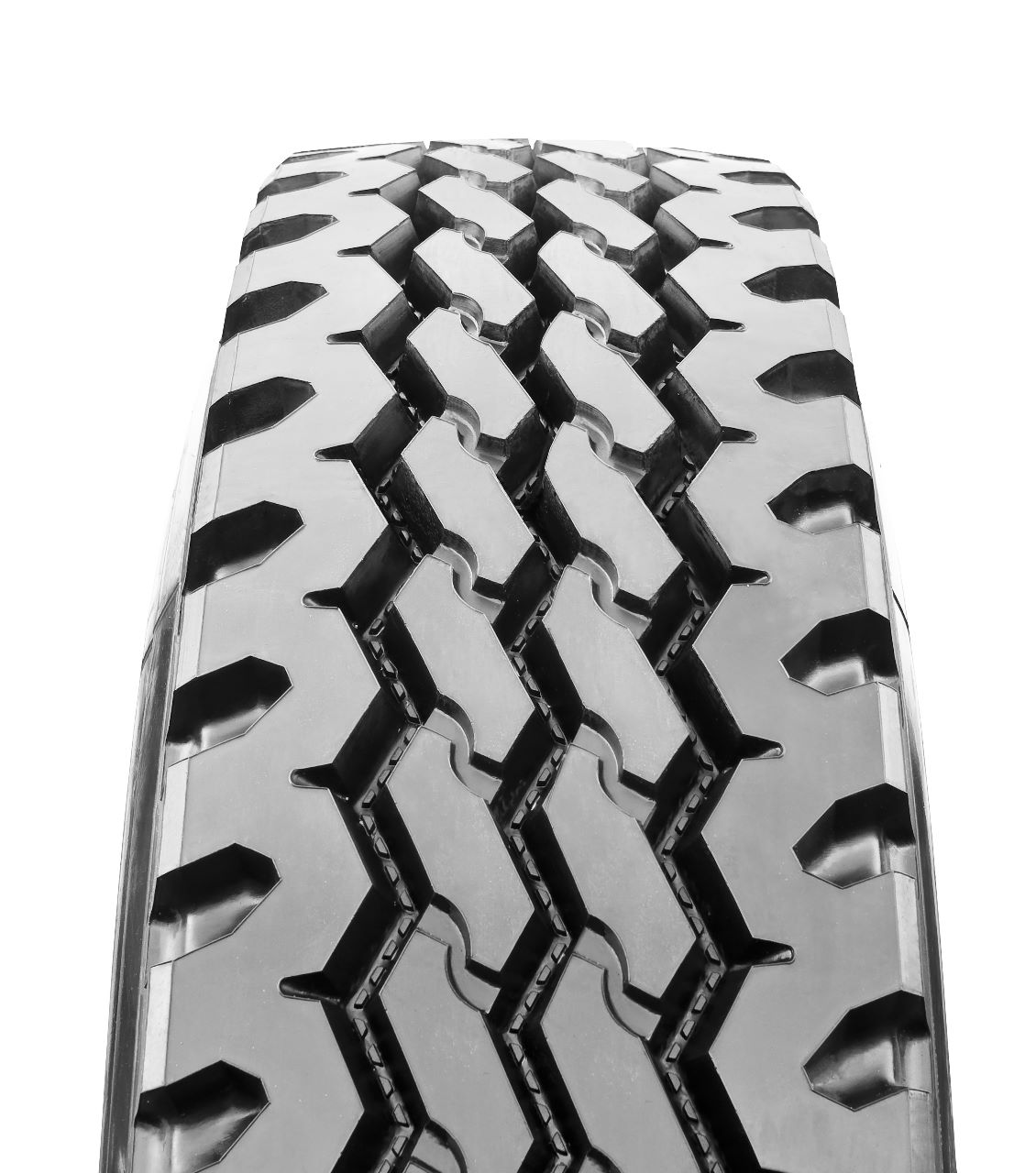 • Large deep shoulder groove improve traction and help the tyre run cool.